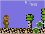 カメのこうらを蹴ると地面の上を滑っていき、当たった敵を倒すことができます。ただし、マリオが当たった場合もミスになるので注意してください。