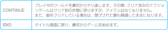 アクション画面で敵や敵の攻撃に当たったり、穴などに落ちたり、残り時間がなくなるとミスになり、プレイヤーの残り数が1人減ります。プレイヤーの残り数が0の状態でミスをするとゲームオーバーになるので注意しましょう。