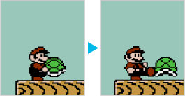 水平な場所で ※ハンマーマリオは、しゃがむと敵のファイアボールを防ぐことができます。