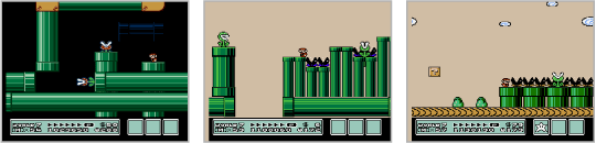 右を見ても左を見ても土管だらけの国。当然パックンフラワーも多いので、慎重に進もう。ここをクリアすれば、ゴールまでもう一息。 |