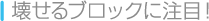 一部の床や壁のブロックは、ボムやビームで壊して道を切り開くことができます。一見何もない通り道だと思っても、すぐ向こう側に進めそうな場所が広がっていたら要注意です。 |