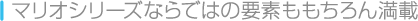 | 冒険のフィールドに「ドカン」があったり、ブロックのような宝箱から、「キノコ」や「フラワー」が飛び出したり……RPGながら、このゲームにはマリオシリーズでは欠かせない、おなじみのしかけやアイテムがたくさん登場します。 フィールドでカギになるのは、マリオの得意なアクション、「ジャンプ」! うまく使って、冒険を進めていきましょう。 |