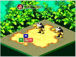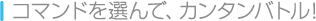 | 敵との戦闘では、4つのボタンのどれかを押してキャラクターの行動を決めていきます。シンプルでわかりやすいシステムなので、RPGがニガテな人でもカンタンに楽しむことができます。 戦闘に慣れてきたら、「アクションコマンド」にも挑戦してみましょう。タイミングよくボタンを押したり、たくさん連打するなど、決められた操作をうまく成功させれば、攻撃やわざをパワーアップできます。 |