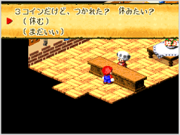 スターの看板が目印の宿屋では、コインを払って一晩泊めてもらい、HPとFPを完全に回復することができます。朝が来たら、