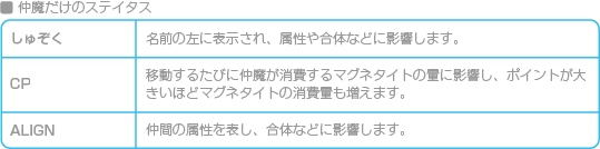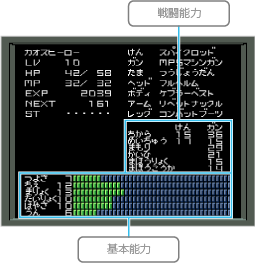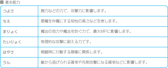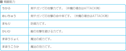 攻撃や魔法などの戦闘能力は、基本能力によって決まります。 |