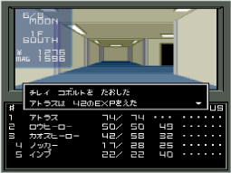 戦闘では、敵を全滅させると勝ちとなり、EXPやお金、ときにはマグネタイトやアイテムを手に入れることができます。逆に、主人公や仲間のキャラクターが全滅する(DEAD/DYING/STONEのいずれかになる)とゲームオーバーです。セーブしたところからやり直してください。 |
