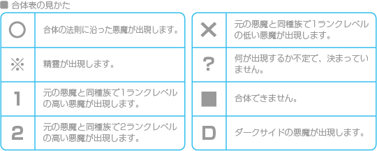 画面に表示される合体表を参考にしながら、合体させる仲魔を