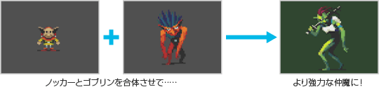 「邪教の館」と呼ばれる施設では、仲魔を合体させて、別の仲魔を作り出すことができます。いろいろな悪魔を組み合わせていくと、強力な仲魔を作り出せることがあります。 ![]() |