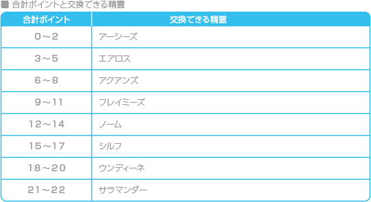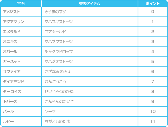 宝石をアイテムや精霊と交換できます。アイテムと交換する場合は宝石に対応するアイテムをもらうことができます。また、精霊と交換する場合は、複数の宝石のポイントの合計数で交換できる精霊が決まります。 ![]() ![]() |