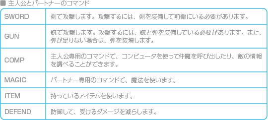 はじめに戦闘用コマンドを選びます。以下の4つからいずれかを選んでください。 ![]() |