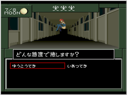 「TALK」を選ぶと、敵と話すときの態度や返答などを選ぶことになります。表示された選択肢を選び、会話を進めてください。うまく会話ができると、敵が仲魔になってくれたり、敵からアイテムをもらえたりします。なお、敵がやる気になるまでは、何回でも「TALK」を選べます。