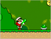 ヨッシーに乗ると、敵を食べたり、食べた敵をはき出すなど、さまざまなアクションができます。頼もしい相棒といっしょにピーチ姫を助け出しましょう。 |