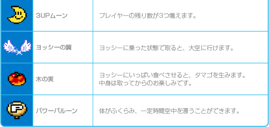 アクション画面で手に入るアイテムや仕掛けを紹介します。