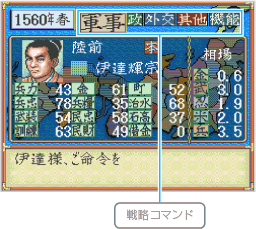 戦略コマンドには、大きく分けて「軍事」「民政」「外交」「其他」「機能」の5種類あります。