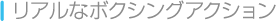 パンチやダッキング、スウェーなど、本格的なボクシングのアクションを簡単な操作で行うことができます。 対戦相手のパンチをダッキングなどで避け、相手のスキを見つけたらタイミングよくパンチを当てて攻撃してください。たとえピンチになっても、うまく相手に強力なパンチを当てることができれば逆転できるチャンスがあります。 ![]() |