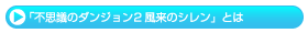 | 『不思議のダンジョン2 風来のシレン』は、ダンジョン探索型RPGとして人気を博した不思議のダンジョンシリーズの第2弾として1995年12月1日に発売されました。基本システムは初代である『トルネコの大冒険〜不思議のダンジョン〜』から引き継いでいますが、新たな仕掛けやアイデアを盛り込んで、さらにパワーアップして帰ってきました。 | ![]() |