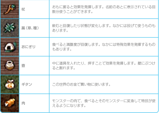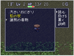 ※アイテムのなかには名前や効果、呪いの有無などがわからない未識別のものがあり、黄色で表示されます。ほとんどの未識別のアイテムは「識別の巻物」で識別できますが、装備したり使うことでも効果がわかることがあります。