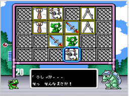 しりとりでは、複数の読みかたを持つパネルがあります。たとえば、「うみ」のパネルは「かいがん」や「ビーチ」、「ねこ」のパネルは「たま」や「キャット」などと読むことができるのです。パネルのいろいろな読みかたを覚えれば、勝利がグッと近づきます。 |