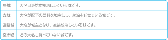 城は、統治の方法によって、以下の4タイプに分けられます。 ![]() |