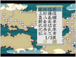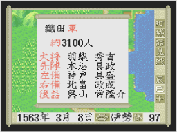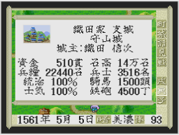 コマンドの「情報」を選ぶと、大名の勢力範囲や織田家の組織表など、さまざまな情報を見ることができます。 |