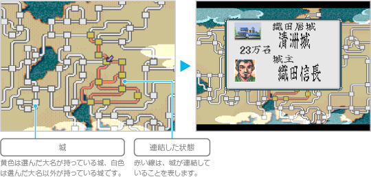 大名の勢力範囲と城の情報を確認できます。 ![]() |