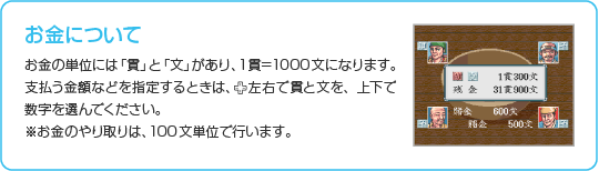 兵糧の購入や売却の主命を受けたときに、米の売買が行えます。 |