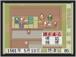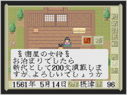 200文支払って宿に泊まって体力を回復させたり、旅人からさまざまな大名の方針を聞くことができます。 |