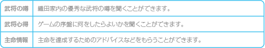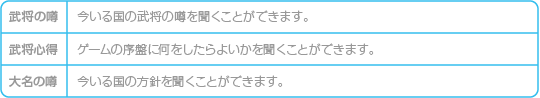 武将に面会して、今いる国の武将の情報を聞くことができます。