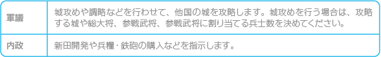 ※「人事」「命令書」「改修」は、自分の居城にいるときのみ実行できます。 ![]() |