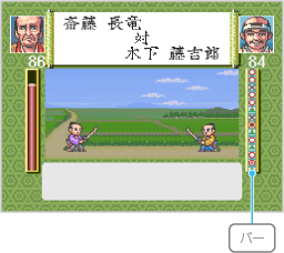 一部の個人戦コマンドを選ぶと、バーが表示され、その上をカーソルが移動します。 ※体力に差があると、ダメージを与えられないことがあります。 |