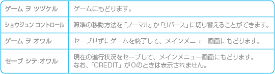 ※「CREDIT」が0のときにゲームオーバーになると、プレイしているゲームのデータは消えます。