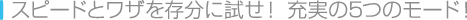 | このゲームには1対1でライバルとゴールを争う「マッチ・レース」のほか、タイムを競う「タイム・アタック」、トリックのスコアを競う「トリック・アタック」、ほかのプレイヤーと対戦できる「2P対戦」、タイムやスコアを争い、合計5つのラウンドをまわって総合得点を競う「コンテスト」の5つのモードが用意されています。 | ![]() |