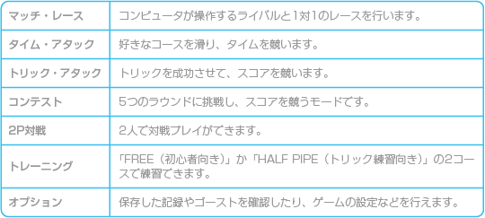メインメニューでモードを選んだら、次にライダー、ボード、コースを選んで準備しましょう。