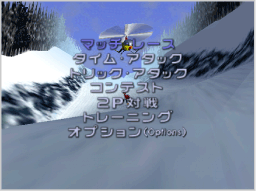 Wii本体の電源を入れたら、Wiiメニュー画面で『テン・エイティ スノーボーディング』のチャンネルを選びましょう。タイトル画面が表示されます。 |