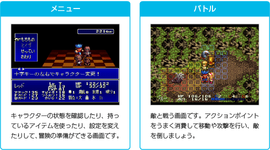を押すとメニューが表示され、冒険の準備をすることができます。