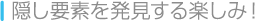 隠れたアイテムやボーナスステージへの行きかたを見つけるのも、本作の楽しみの1つ。 ゲームが有利になるのはもちろんですが、クスッと笑えるアイテムが隠されていることも。 あなたはどれだけの隠し要素を発見できるでしょうか? ![]() |