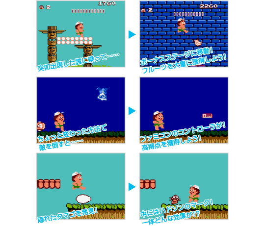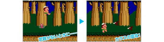 本作はファミコン史上もっとも難しいゲームの1つとして数えられます。ゲームシステムはシンプルで誰もが楽しめるものですが、敵や障害物の配置が厳しく、非常に歯ごたえのあるつくりとなっています。その分、困難を乗り越えたときの喜びもひとしお。なお、バーチャルコンソールの機能を使うと、前回中断した状態からゲームを再開できます。高橋名人の「ゲームは1日1時間」の言葉を守り、時間が足りずにクリアできなかった方にこそ、ぜひとも挑戦してほしい作品です。 ![]() ![]() |