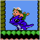 を押すとノッシーの上から石オノを投げて攻撃できます。また、水の中をスムーズに進めます。