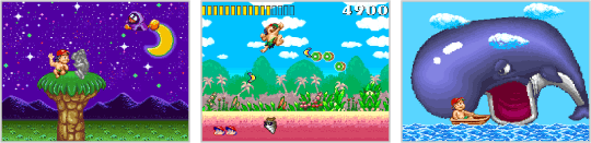| ここは平和の国アドベンチャーアイランド。この国を狙う数々の侵略者たちと勇敢に戦い、平和を守り続けている高橋名人はみんなの英雄です。ま、そんなわけだから憎らしいことに、名人は女の子にモテモテ。今夜もミス・ジャングルと呼ばれている美しい娘、ジーナとのおデートで心ウキウキ。満天の夜空にちりばめられた美しい星、波音だけが聞こえる白い砂浜……。2人のムードは盛り上がり、「さあこれから…」、というときにイタズラ好きのダーキーが通りかかってしまったから大変です。2人のアツアツムードにムッカ〜ときたダーキーは、ジーナを魔法で石に変えてしまったのです。 「これからってときに、なんてことするんだよー」なんて、名人は言っているときではありません。ジーナを早く元の姿にもどしてあげなければ……。そのためには、遠く遠く海の向こうにあるといわれる『でんせつ山のでんせつ沼に沈む伝説のオノ』で石を砕いてしまうしか方法がないのです。 『伝説のオノ』を求めて、高橋名人の大冒険は続きます。丘を越え、洞窟を抜け、海を渡り、山を登り、そして、その途中には多くの障害や悪者たちの妨害が待ち受けています。そして、でんせつ山のふもとには、あのダーキーの悪魔城があるのです。 ![]() |