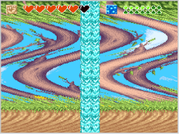 魔法の器は、魔法を使うために必要な、魔法エネルギーを示します。魔法を使用するたびに魔法の器の中身が減っていきます。魔法エネルギーの消費量は、魔法の種類によって異なります。 魔法の器は、敵が落とす魔法の元(緑のビン)を拾う、魔法の器を入手する、宿屋を利用するといった方法で回復できます。 |