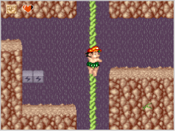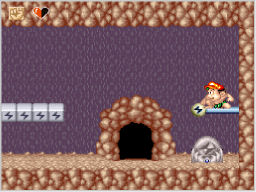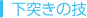この技を身に付けると、下向きの三角印があるブロックを破壊できるようになります。下突きをするには、ジャンプ中に、 |