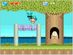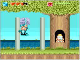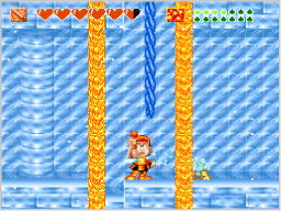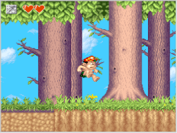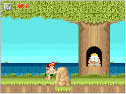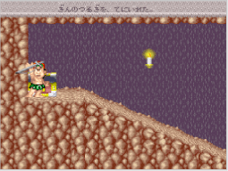 冒険を進めると、新しい技を教えてくれる仙人が現れます。高橋名人は、「力の技」「下突きの技」「上突きの技」の順番で、特別な技を覚えていきます。 |