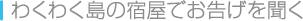 | わくわく島の宿屋で休むと、夢の中で役立つお告げを聞くことができます。次の目的地の情報など、進めかたの参考になるため、ときどき戻ってみるのも手です。 | ![]() |