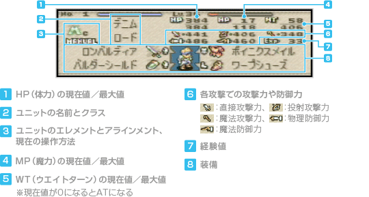 を押すと、ステータスを見ることができます。ステータス画面は2ページあり、