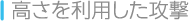 直接攻撃や投射攻撃などの物理攻撃は、ユニットの位置によって効果が変化します。敵よりも高い位置にいる場合、射程範囲が広くなったり、敵からの攻撃が当たりにくくなったりします。 また、状況によっては敵を1マス分後退させることができ、高いところから低い場所に落とすことができれば敵にダメージを与えることができます。高さをよく見て自軍ユニットを動かし、効率よく敵と戦ってください。 |