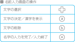を押すと主人公の名前入力画面になり、名字と名前をそれぞれ変更できます。名字と名前を入力後に、「終」を選ぶか、