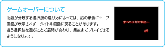 話の途中では、シナリオの展開が分岐する選択肢が表示されることがあります。選択肢が表示されたら、