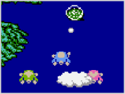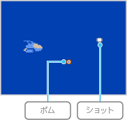 を押すと、正面にショットを発射します。空中の敵はショットで攻撃します。また、ショットで雲を撃つとベルが出現することがあります。