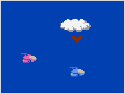 で上方向にハートを発射し、ベルや雲を撃つことができます。雲を撃つと、ベルが出現することがあります。なお、ハートで敵を攻撃することはできません。