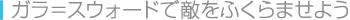 | ウパの唯一の武器である「ガラ=スウォード」。これを使うと、敵をふくらませて、ぷかぷか浮かばせることができます。ただ倒すだけではないのが、このゲームの大きなポイント。ふくらませた敵を上手に利用することで、クリアへの道が開けるのです。 | ![]() |